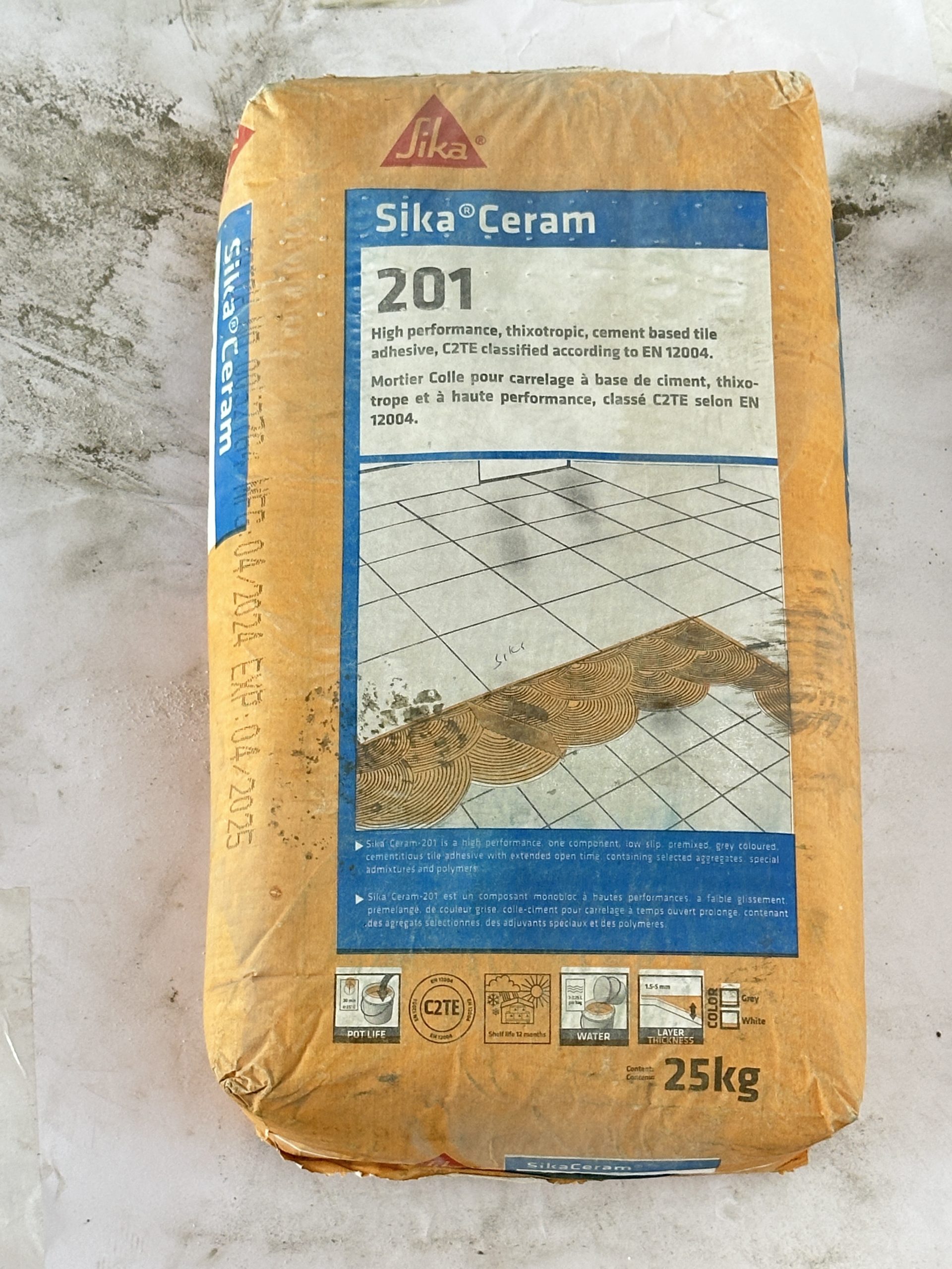 Sika Ceram – 201 is a high performance flexible cementitious adhesive, supplied ready to use with the addition of water. It can be used for bonding ceramic tiles in internal and external situations, for vertical as well as horizontal applications. It can be used in layers up to 5 mm thick. SikaCeram®-201 is suitable for all kinds of tiles for inside and outside application for residential and medium load areas. It comes in Grey & White Colour